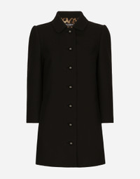 The DNA collection is distinguished by timeless shapes, bringing together three concepts: Sicilian flair, tailoring and sensuality. Nero Sicilia black and optical white predominate and pair with colors that catapult us onto the island of Sicily and make us dream. The designers channel the timeless wardrobe made up of creations that are instantly unmistakable in their simplicity, presenting us with sophisticated beauty loaded with meaning and symbolism that transcends fashion. Short stretch woolen coat: • Black • Baby collar • Long sleeves • Welt pockets • Leopard-print stretch satin lining • Canneté-covered button fastenings and DG logo • The piece measures 80 cm from the center back on a size IT 40 • The model is 175 cm tall and wears a size IT 40 • Made in Italy External composition: 98% Virgin Wool 2% Spandex Internal composition: 97% Polyester 3% Spandex