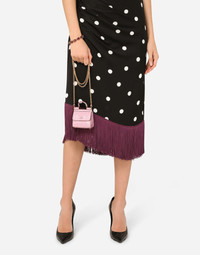 Perfect worn as a crossbody bag or as a belt bag on the waist, the Sicily 58 micro bag from the 58-62 line comes in crocodile flank leather with the same finishes as the classic size. It takes its inspiration from the date of births of Domenico Dolce and Stefano Gabbana, born in 1958 and 1962 respectively. Perfect for holding a credit card and finishing off the looks presented in the collection: • Front flap with hidden magnetic press-stud fastening • Laser-etched enameled metal plate with logo on the front • Top handle and detachable chain strap • Flat front pocket • Outer rear compartment with flap featuring the debossed logo • Accordion sides with straps featuring press-stud fastenings • Nappa leather lining • Metal feet studs on the base • Item comes with its own special branded dust bag and packaging • Measurements: 9 x 7 x 5 cm - 3.5 x 2.8 x 2 inches • Made in Italy Care And Details External composition: 100% Caiman Internal composition: 100% Lambskin