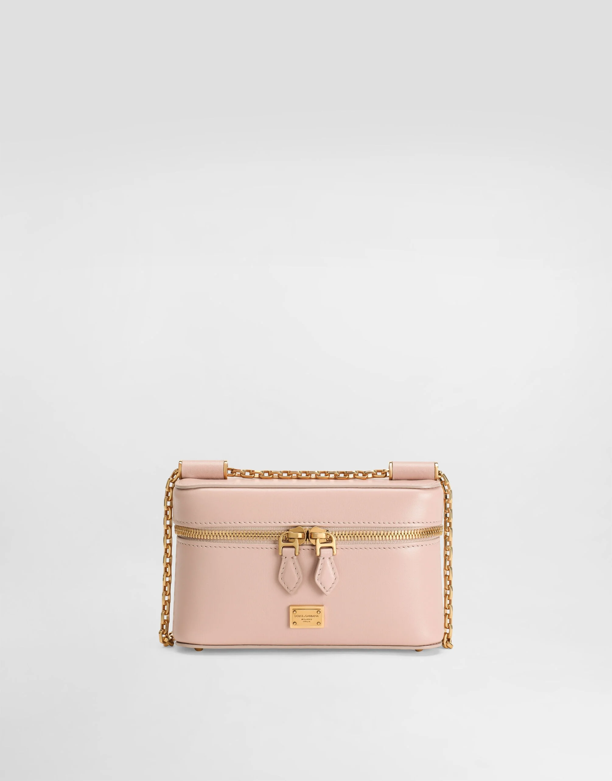 Feminine and versatile, this new Sicily crossbody bag comes in plonge calfskin and features a branded tag with two metal plating finishes. Calfskin plonge Sicily crossbody bag: • Blush • Double-slider zipper fastening • Adjustable chain strap • Nappa leather lining with mirrored logo and elastic storage strap • Item comes with a branded dust bag • Measurements: H10 x W17 x D6 cm • Made in Italy External composition: 100% Calfskin Internal composition: 97% Lambskin 2% Polyester 1% Spandex