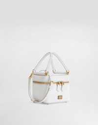 This new Sicily bag comes in plonge calfskin with a logo tag featuring two metal plating finishes. Calfskin plonge Sicily handbag: • White • Double-slider zipper fastening • Top handles and adjustable, detachable strap in calfskin • Nappa leather lining with flat pocket and mirrored logo detailing • Item comes with a branded dust bag • Measurements: H11 x W12.5 x D12.5 cm • Made in Italy External composition: 100% Calfskin Internal composition: 100% Lambskin