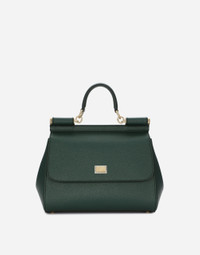 The brand icon par excellence; this large Sicily bag comes in Dauphine calfskin. Understated and feminine; it comes with the logo tag featuring two metal plating finishes. Large handbag from the Sicily line in Dauphine leather. • Front flap with hidden snap closure and galvanic logo plate in the front • Top handle and adjustable and removable leather shoulder strap • Cotton interior with Leo print • Internal zip pocket and smartphone pocket • Metal studs on the bottom • Comes with logoed Dust Bag • Measurements. 026 x 21 x 12 cm • Made in Italy External Composition: 100% Calfskin Internal Composition: 80% Cotton 20% Calfskin