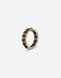 The yellow gold ring is a reinterpretation of the classic rosary consisting of a chain with beads. The rosary ring can indeed be used for the same purpose. The ring is embellished with thirteen black jade spheres that represent the beads of the rosary. On the fourteenth yellow gold sphere, the "DOLCE&GABBANA" logo has been engraved. Technical features: Gold 750/000 Gems: 13 beads in black jade Made in Italy Composition: Yellow Gold 750/000