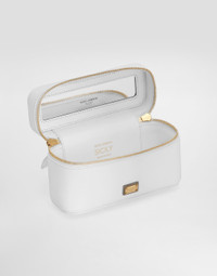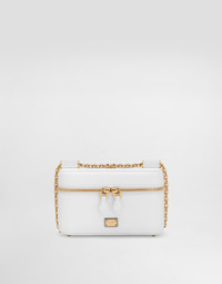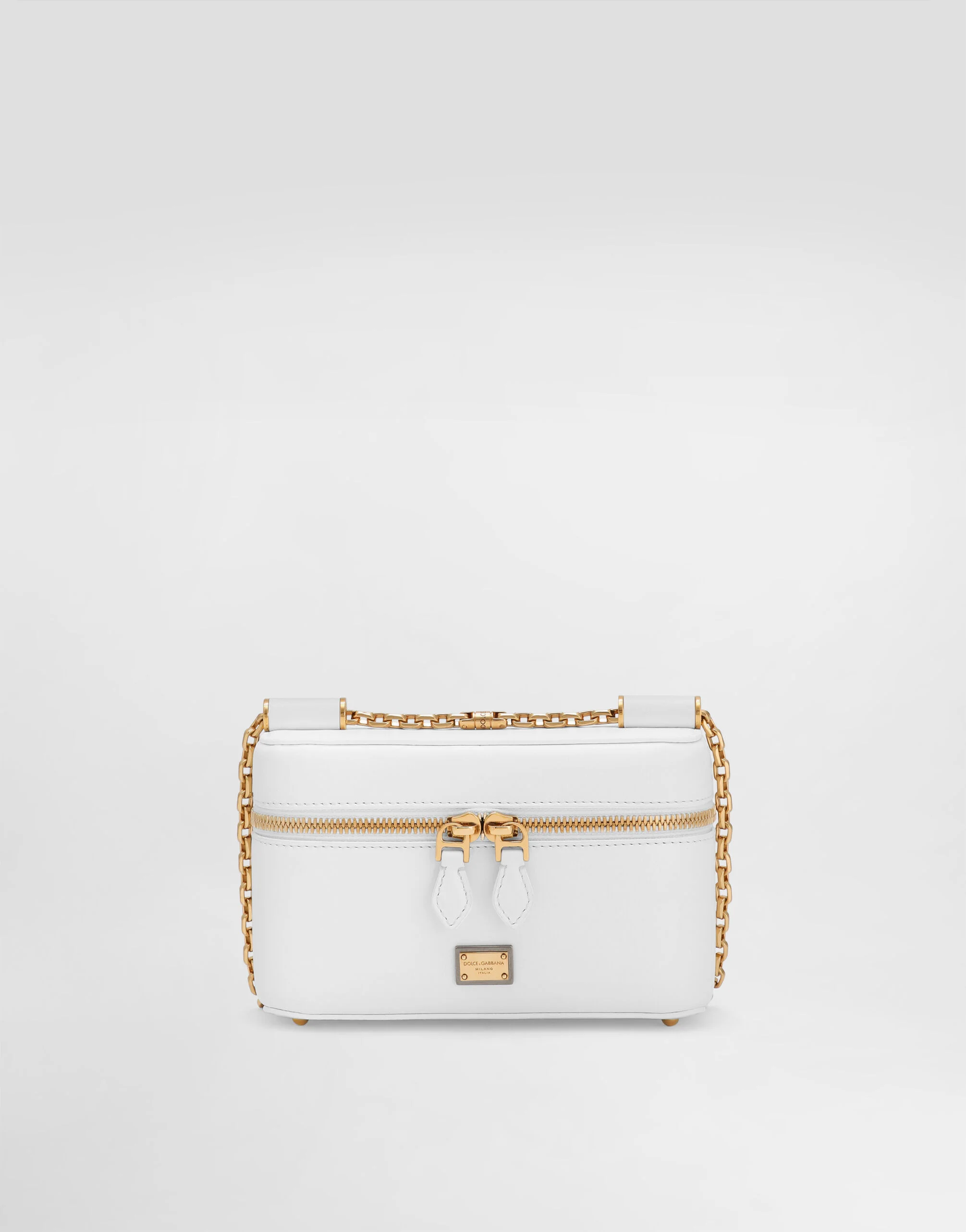 Feminine and versatile, this new Sicily crossbody bag comes in plong� calfskin and features a branded tag with two metal plating finishes. Calfskin plonge Sicily crossbody bag: • White • Double-slider zipper fastening • Adjustable chain strap • Nappa leather lining with mirrored logo and elastic storage strap • Item comes with a branded dust bag • Measurements: H10 x W17 x D6 cm • Made in Italy External composition: 100% Calfskin Internal composition: 97% Lambskin 2% Polyester 1% Spandex