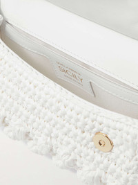 Sicily small leather-trimmed crocheted raffia shoulder bag
