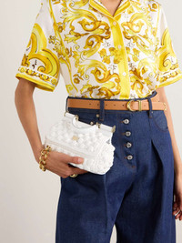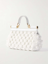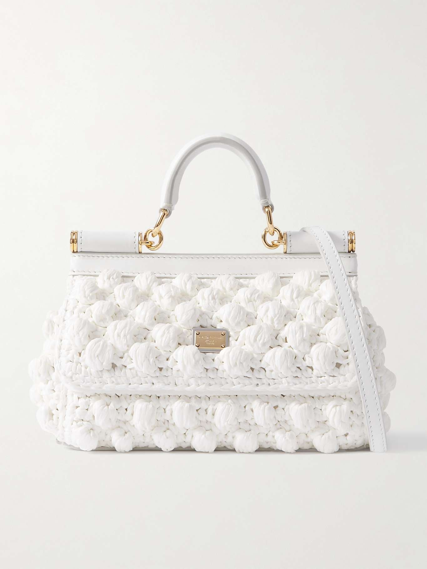 EDITORS'NOTES A brand icon, Dolce&Gabbana's 'Sicily' shoulder bag is inspired by the elegant women of Southern Italy. This summery iteration is crocheted for an elongated structured shape reminiscent of vintage styles and topped with a rolled leather handle. Your phone, cardholder and keys will slip in with ease. SIZE & FIT This item’s measurements are: - Handle Drop: 7cm / 2.8in - Depth: 8cm / 3.1in - Height: 12cm / 4.7in - Width: 20cm / 7.9in DETAILS & CARE - White raffia and leather - Top handle, detachable and adjustable shoulder strap - Internal slip pocket - Twill lining - Snap fastening front flap - Comes with a dust bag