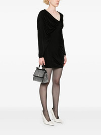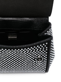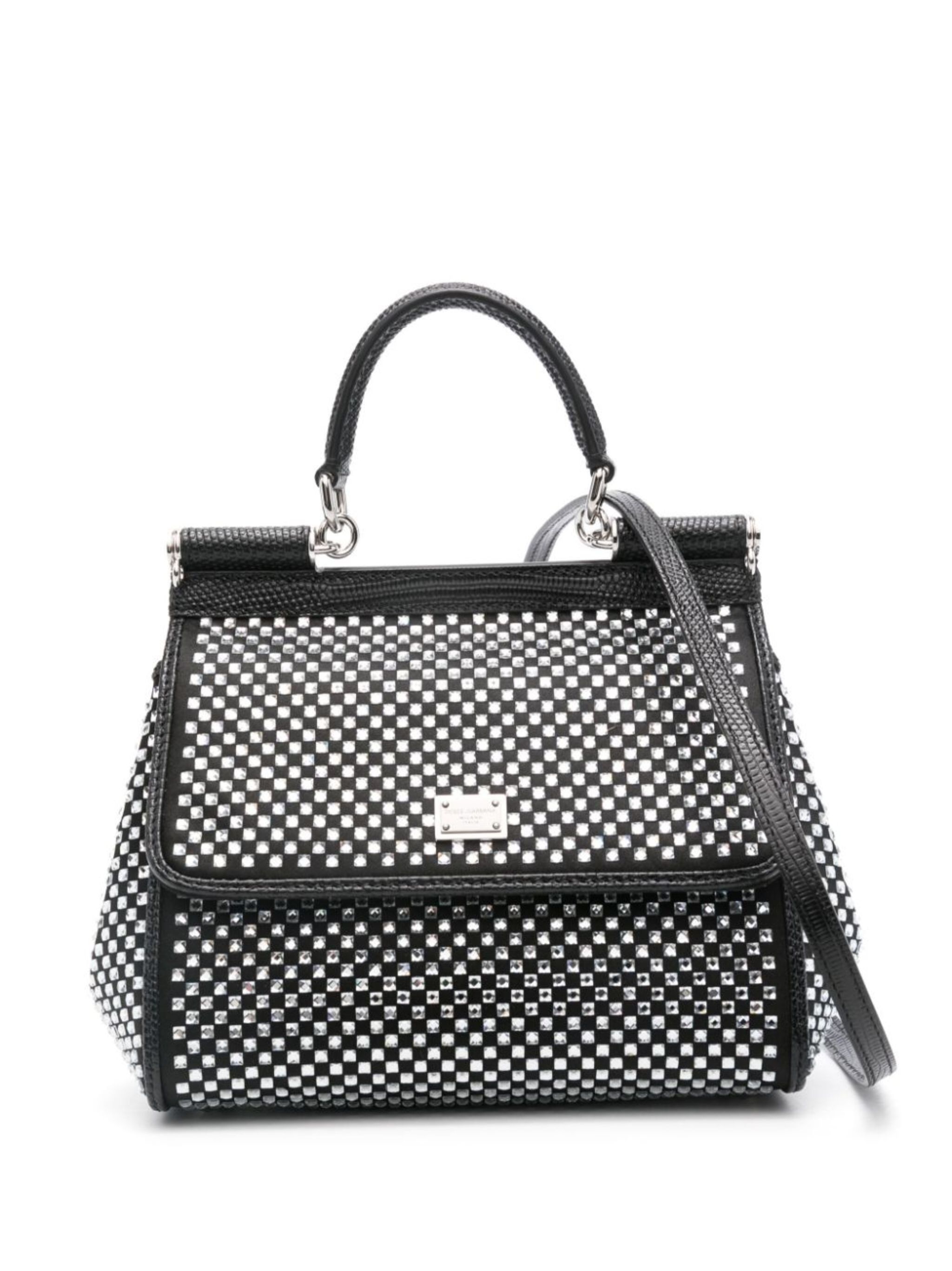 black calf leather lizard-skin effect crystal embellishment adjustable detachable shoulder strap single top handle logo plaque at the front metal feet main compartment internal patch pocket internal card slot internal logo plaque full lining silver-tone hardware foldover top with magnetic fastening This piece comes complete with a protective dust bag. Size & Fit Model Measurements: Bust: 0cm Height: 0cm Hips: 0cm Waist: 0cm DEPTH: 10cm HANDLE: 6cm HEIGHT: 15cm STRAP: 130cm WIDTH: 21cm Fabric and Care Designer Style ID: BB6003AP602 Designer Colour: 8S488 NERO/CRYSTAL Composition: Outer: Viscose 60%, Glass 100%, Calf leather 10%, Silk 30%Made in Italy