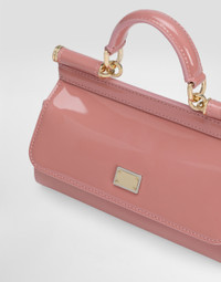 The brand icon par excellence, this small Sicily bag comes in patent leather. Understated and feminine, it features the branded tag with two metal plating finishes. Small patent leather Sicily bag: • Pink • Front flap with hidden double magnetic fastening • Branded logo tag featuring two metal plating finishes • Top handle and adjustable, detachable strap in calfskin • Fabric lining • Item comes with a branded dust bag • Measurements: H13 x W19 x D6 cm • Made in Italy External composition: 100% Calfskin Internal composition: 80% Cotton 20% Lambskin