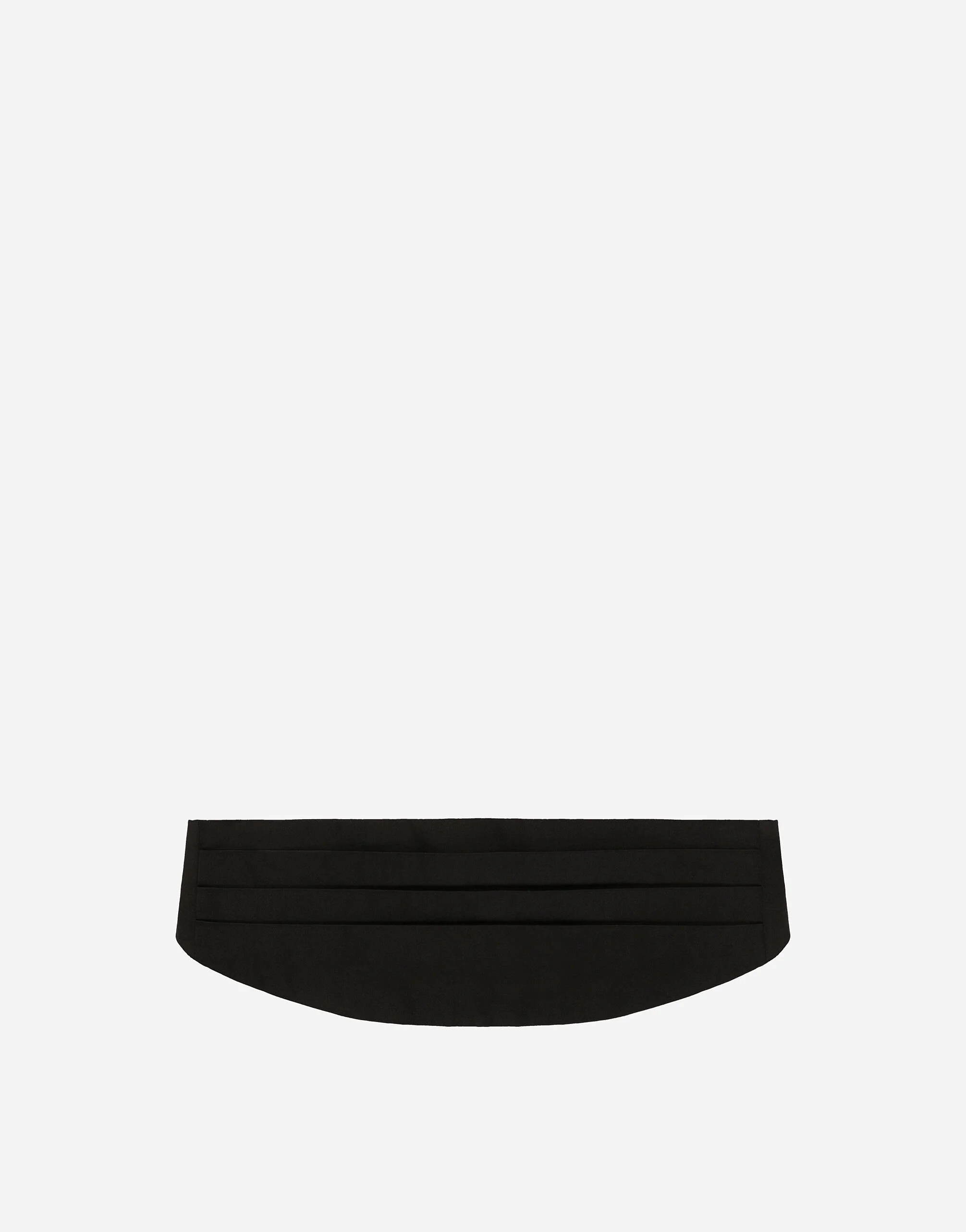 Menswear and womenswear mix and mingle, influencing one another and creating tailoring that embraces endless nuances, from the boldest to the most sophisticated, to define the rules of eternally classy femininity. A monochrome retelling in Nero Sicilia black, embellished by golden touches and rhinestones, adorning clean lines and incorporating stylish fabrics such as velvet, chiffon, lace, organza, and unique mesh details, the expression of authentic beauty for dresses, shirts and accessories. Silk satin cummerbund: • Black • Adjustable hook fastening on the back • “Dolce&Gabbana” logo • Made in Italy External composition: 100% Silk Internal composition: 100% Silk