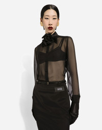 Silk chiffon shirt with satin details