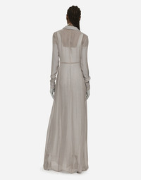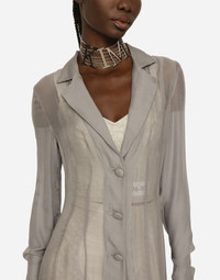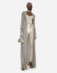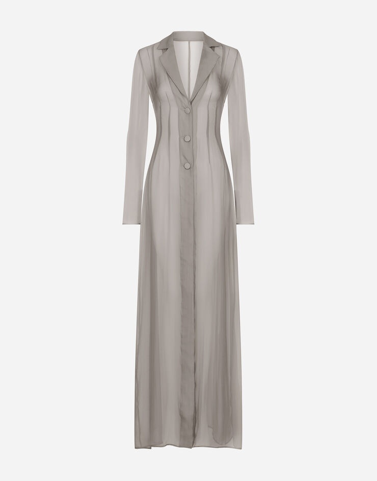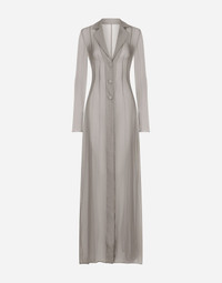 Stretch silk georgette duster coat with the Re-Edition label: • Notched lapels • Long sleeves with zippered cuffs • Regular fit • Unlined • “Kim Dolce&Gabbana” inner label • Covered button fastenings • The piece measures 159 cm from the rear collar seam on a size IT 40 • The model is 175 cm tall and wears a size IT 40 • Made in Italy Care And Details External composition: 92% Silk 8% Spandex