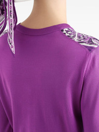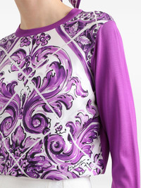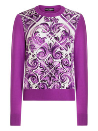 silk jumper Highlights - Purple - Crew neck - Long sleeves - Ribbed cuffs and hem - Graphic print to the front Made in Italy Composition Silk 100%