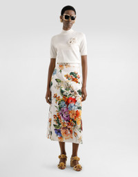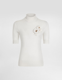 This elegant pullover is perfect for those looking for a versatile and refined garment. Made of silk with a refined flower-shaped brooch, it represents the perfect balance between style and comfort, ideal for enriching any wardrobe with a touch of class. Silk pullover with flower brooch: • White • Turtleneck • Long sleeves • Bottom width 60 cm on size 40 IT • The model is 175 cm tall and wears size 40 IT • Made in Italy External Composition: 100% Silk