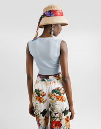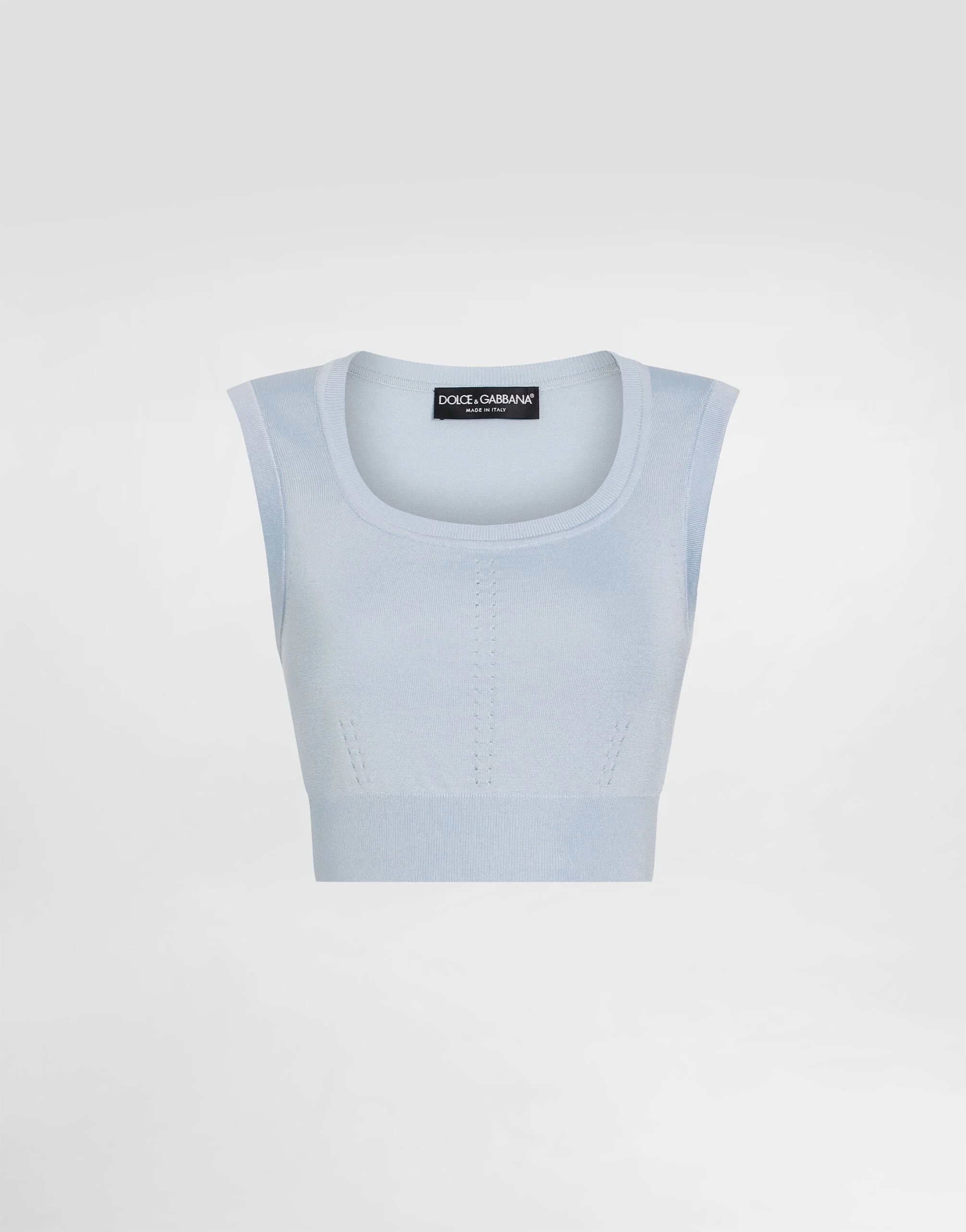 This sleeveless tank top is a summer wardrobe essential, combining elegance and comfort with its refined design and premium fabric. Silk tank top with punches: • Light blue • Crew neck • Sleeveless • The model is 175 cm tall and wears size 40 IT • Made in Italy External Composition: 97% Silk, 3% Polyamide