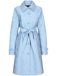 DNA single-breasted brocade coat Highlights - Sky blue - Silk-cotton blend - Brocade effect - Peter pan collar - Front button fastening - Detachable and adjustable waist belt - Long sleeves - Belted cuffs - Knee-length - Straight hem Made in Italy Composition Outer: Cotton 64%, Polyester 23%, Silk 13% Lining: Silk 92%, Spandex/Elastane 8%