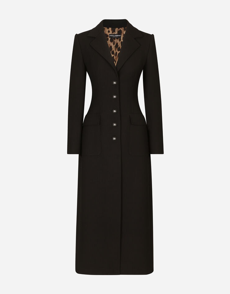 • Notched lapels • Long sleeves • Slim fit • Flap pockets • Leopard-print stretch satin lining • Canneté-covered button fastenings and DG logo • The piece measures 130 cm from the rear seam on a size IT 40 • The model is 175 cm tall and wears a size IT 40 • Made in Italy Care And Details External composition: 60% Viscose 40% Virgin Wool Internal composition: 97% Polyester 3% Spandex