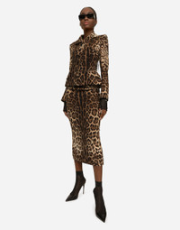Single-breasted double wool crepe jacket with leopard print: • Notched lapels • Long sleeves • Flap pockets • Leopard-print stretch satin lining • Padding on the sides • Canneté-covered button fastenings • The piece measures 55 cm from the rear collar seam on a size IT 40 • The model is 175 cm tall and wears a size IT 40 • Made in Italy Care And Details External composition: 100% Wool Internal composition: 97% Polyester 3% Spandex