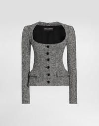 Single-breasted jacket in wool chevron