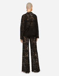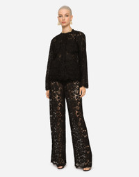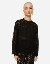 Single-breasted lace jacket: • Round neck • Long sleeves • Patch pockets • Tulle lining • Inner press-stud fastenings and decorative silk satin-covered buttons on the exterior • The piece measures 63 cm from the rear collar seam on a size IT 40 • The model is 175 cm tall and wears a size IT 40 • Made in Italy Care And Details External composition: 43% Viscose 34% Cotton 23% Polyamide Internal composition: 100% Polyamide