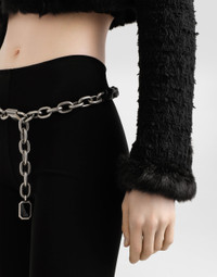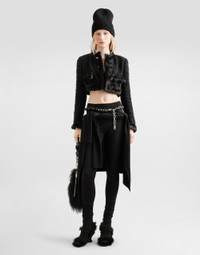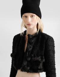 In the Fall/Winter 2025 Fashion Show Collection, shearling jackets, in fur-free versions, reveal slip dresses and create contrast' plays while denim welcomes fabric or Leo print inserts. Sweatshirts are the result of long experimentation with volumes. Evening looks become precious thanks to dresses with special embroideries and luminous touches of sequins and crystals. Sheepskin inserts also unite hats, shoes, and bags, including those with pockets. This single-breasted mat jacket is a stylish and sophisticated piece that is perfect for adding a touch of class to your wardrobe. The matting gives a textured and refined look, ideal for special occasions or to elevate your everyday style. Single-breasted mat jacket: • Black • Fur perimeter edges • Patch pockets at the bottom with fur trim • Closure with fur-covered buttons and poussoir • Body and sleeve canvassed with tulle • The model is 175 cm tall and wears size 40 IT • Made in Italy External Composition: 67% Cotton, 28% Viscose, 4% Linen, 1% Polyamide Internal Composition: 90% Polyamide, 7% Acetate, 3% Silk