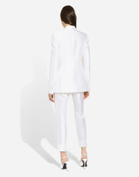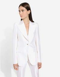 The Flowering Collection has us dreaming of faraway destinations, the most exclusive ones in the world, inviting us through the colors and the yellow rose print to take refuge in warm and unique places. Light White, lemon yellow, polka-dot accents and the various shades of leaf green for vibrant and ultra-feminine pieces where the keyword is tailoring. Every look invites us to savor and dream every moment of our free time, to discover beauty and enhance our femininity. Single-breasted Mikado silk Turlington jacket: • White • Single-breasted • Peak lapels • Long sleeves • Flap pockets • Stretch silk crepe de chine lining • Button fastening • The piece measures 70 cm from the rear collar seam on a size IT 40 • The model is 175 cm tall and wears a size IT 40 • Made in Italy External composition: 100% Silk Internal composition: 91% Silk 9% Spandex