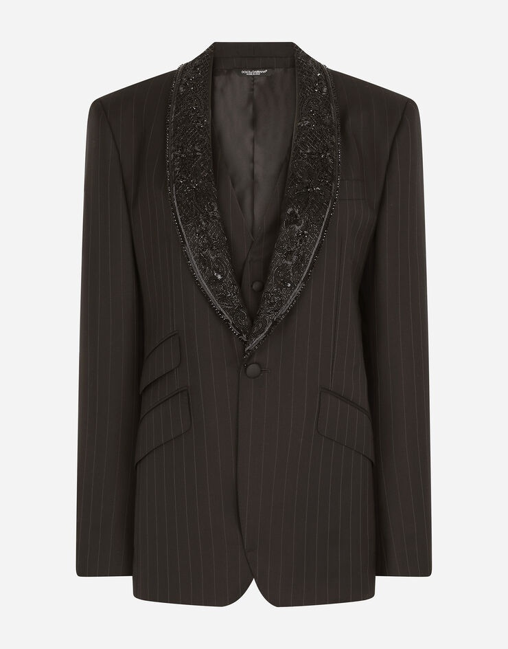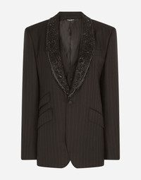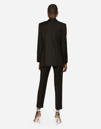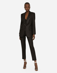 • Shawl lapels • Long sleeves • Flap pockets • Stretch silk satin lining • Button fastening covered in silk canneté • The piece measures 75 cm from the rear collar seam on a size IT 40 • The model is 175 cm tall and wears a size IT 40 • Made in Italy Care And Details External composition: 99% Virgin Wool 1% Polyester Internal composition: 92% Silk 8% Spandex