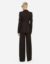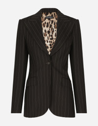 Single-breasted pinstripe stretch wool Turlington jacket: • Brown • Peak lapels • Long sleeves • Flap pockets • Leopard-print stretch satin lining • Covered button fastening and DG logo • The piece measures 70 cm from the center back on a size IT 40 • The model is 175 cm tall and wears a size IT 40 • Made in Italy Care And Details External composition: 98% Virgin Wool 2% Spandex Internal composition: 97% Polyester 3% Spandex