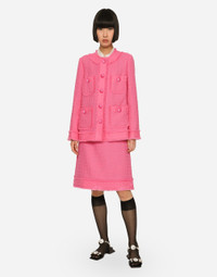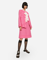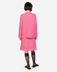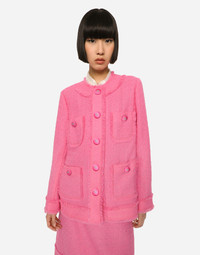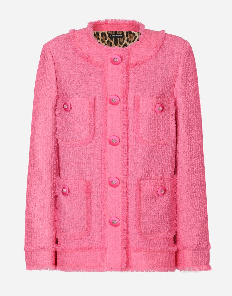 Single-breasted raschel tweed jacket: • Round neck • Long sleeves • Patch pockets with inner press-stud button and covered decorative button with the DG logo on the exterior • Leopard-print stretch satin lining • Inner press-stud fastenings and decorative canneté-covered buttons with DG logo on the exterior • The piece measures 65 cm from the rear collar seam on a size IT 40 • The model is 175 cm tall and wears a size IT 40 • Made in Italy Care And Details External composition: 93% Wool 7% Polyamide Internal composition: 97% Polyester 3% Spandex