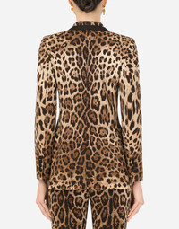 Single-breasted Turlington jacket in leopard-print woolen fabric
