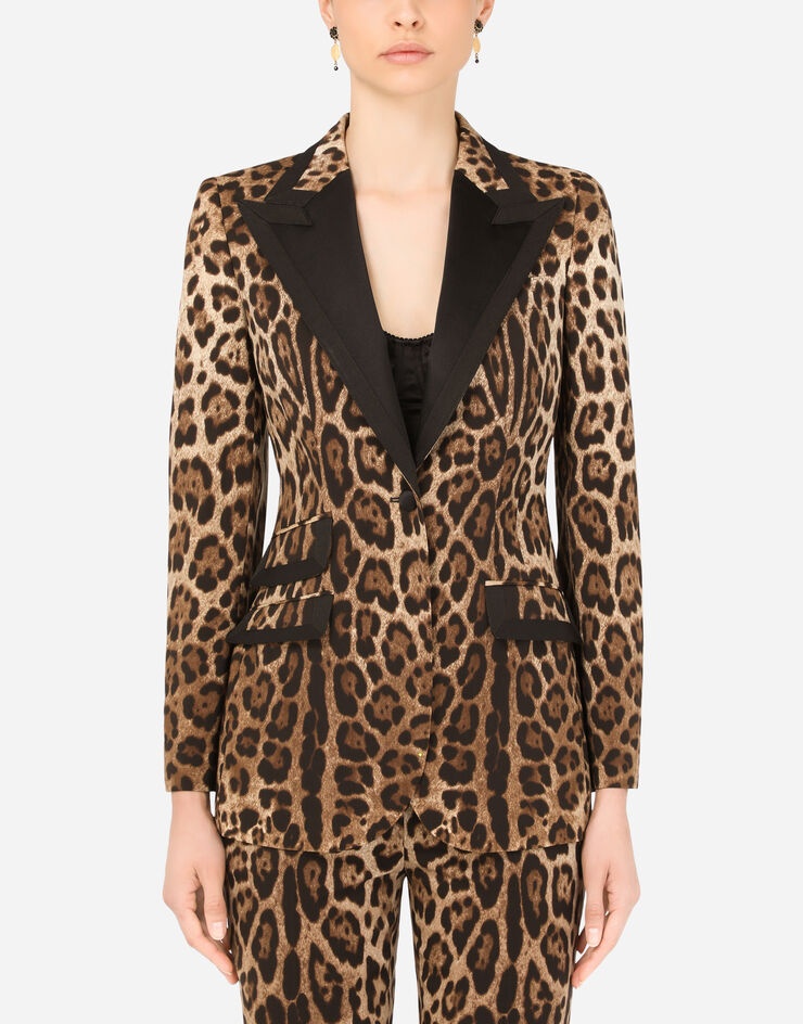 The iconic leopard print adds boldness and femininity to Dolce&Gabbana’s timeless Turlington jacket, which will become a must-have for every woman’s wardrobe: • Duchesse peak lapels with contrasting piping • Contrasting gros-grain piping • Double back vent • Leopard-print stretch satin lining • Duchesse button fastening • The piece measures 70 cm - 27.6 inches from the rear collar seam on a size IT 40 • The model is 175 cm - 68.9 inches tall and wears a size IT 40 • Made in Italy Care And Details External composition: 78% Wool 8% Silk 6% Cotton 4% Acetate 2% Spandex 2% Polyester