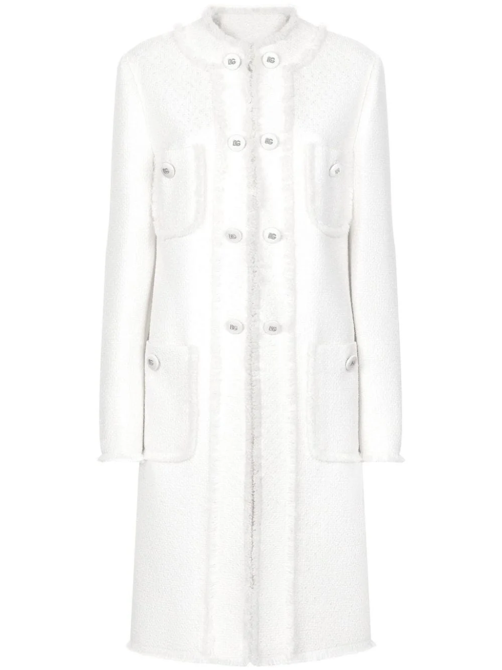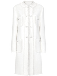 DNA single-breasted tweed coat Highlights - White - Tweed - Frayed edge - Crew neck - Concealed front fastening - Long sleeves - Four front patch pockets - Knee-length - Straight hem Made in Italy Composition Outer: Virgin Wool 67%, Viscose 27%, Polyamide 6% Lining: Silk 92%, Spandex/Elastane 8%