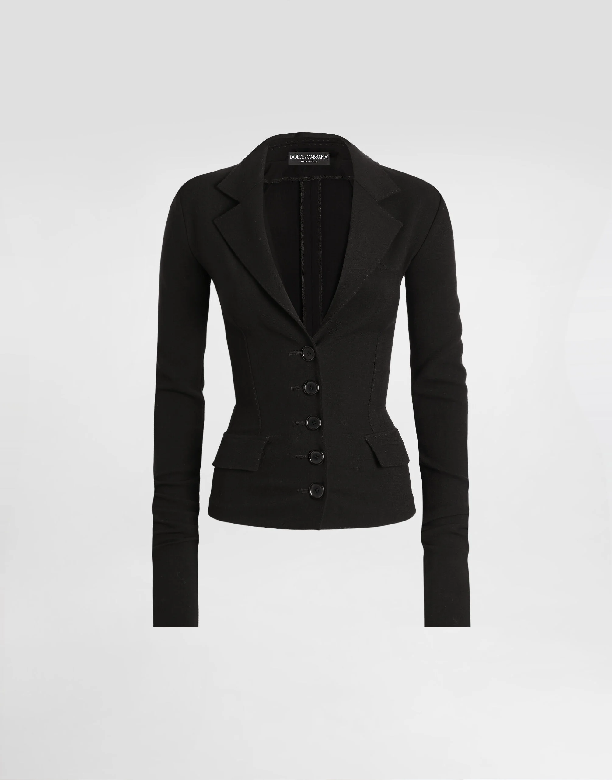 This tight jacket is the perfect combination of elegance and comfort, ideal for the modern woman looking for a refined and contemporary style. The single-breasted construction with buttons and notched lapels adds a refined touch, while the stretch wool fabric ensures an impeccable fit. Single-breasted jacket in wool canvas: • Black • Tight fit • Notched lapels • With side panel • Long sleeves • Unlined • The model is 175 cm tall and wears size 40 IT • Made in Italy External Composition: 97% Virgin Wool, 3% Elastane