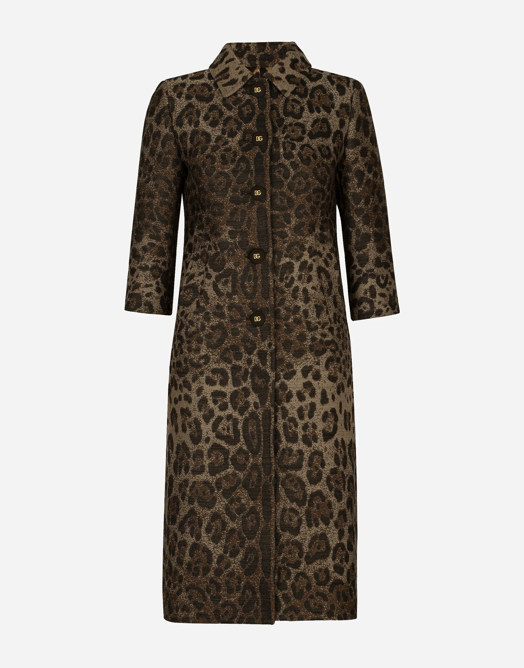 Single-breasted wool jacquard coat with leopard design: • Animal print • Shirt collar • Long sleeves • Pockets • Slim fit • Leopard-print stretch satin lining • Covered button fastenings and DG logo • The piece measures 100 cm from the center back on a size IT 40 • The model is 175 cm tall and wears a size IT 40 • Made in Italy The difference in the print placement that you may find on this product is a feature of Dolce&Gabbana’s “Handmade” pieces. A detail that makes every garment or accessory unique and exclusive. Care And Details External composition: 99% Virgin Wool 1% Polyamide Internal composition: 97% Polyester 3% Spandex