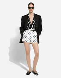 The FW24/25 Mambo Collection is rewriting the rules of Italian elegance, merging the sophisticated style of the 1940s and 1950s with the iconography of American pin-ups. The unmistakable polka-dot motif takes center stage, coming in a variety of shapes and sizes and adorning tulle, charmeuse, twill, silk and poplin, giving life to looks distinguished by black and white accessories and details. An homage to the beauty of Italy and its traditions, the distinctive details of Dolce&Gabbana’s creations. Single-breasted woolen jacket: • Black • Peak lapel collar • Long sleeves • Silk satin lining • Button fastenings • The piece measures 75 cm from the center back on a size IT 40 • The model is 175 cm tall and wears a size IT 40 • Made in Italy External composition: 100% Wool Internal composition: 100% Silk