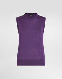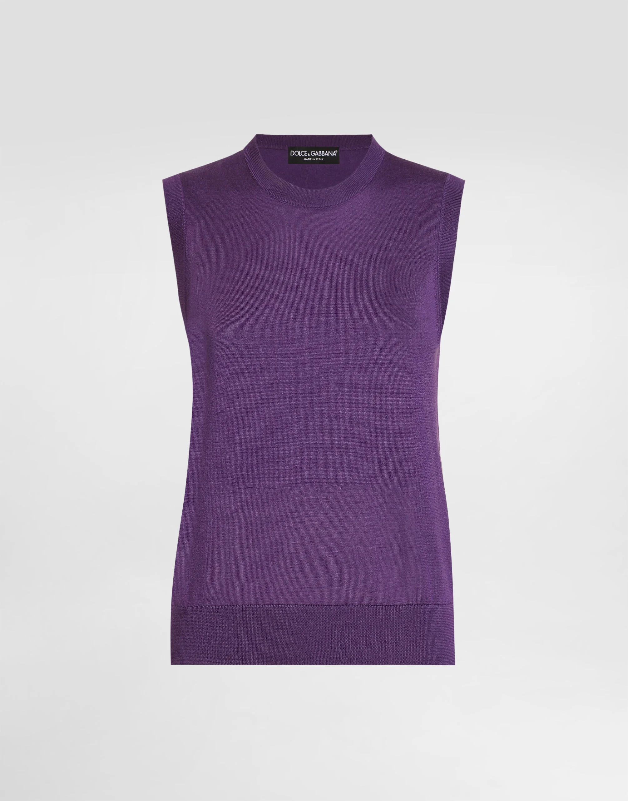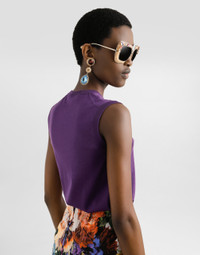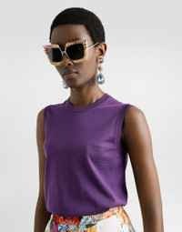 This sleeveless tank top is the ideal garment for those looking for a sophisticated and light look. Made of fine silk, it has a simple and refined design, perfect for any occasion. Silk tank top with flower brooch: • Purple • Crew neck • Sleeveless • The model is 175 cm tall and wears size 40 IT • Made in Italy External Composition: 100% Silk