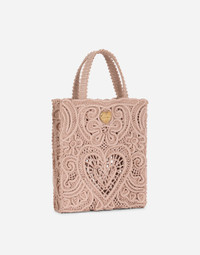 Featuring an exclusive design, this small Beatrice shopper symbolizes craftsmanship and refinement. The fine cordonetto lace, which embodies Sicilian tradition and represents the brand's signature aesthetic, creates the image of a feminine and unique woman. Completely unlined, it features a branded heart. Small cordonetto lace shopper: • Top handle in cordonetto lace • Item comes with a matching dust bag • Measurements: 25.5 x 21 x 9 cm • Made in Italy External composition: 90% Cotton 10% Viscose Internal composition: 90% Cotton 9% Viscose 1% Lambskin