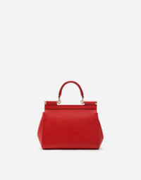 The brand icon par excellence; this medium Sicily bag comes in Dauphine calfskin. Understated and feminine; it comes with the logo tag featuring two metal plating finishes. Small dauphine leather handbag from the Sicily line. • Front flap with hidden press-stud closure and front logoed galvanic plaque • On top handle with removable and adjustable leather strap • Cotton leopard print inner • Internal smartphone pocket • Item equipped with logoed dust bag • Measurement. 20 x 16 x 8 cm External Composition: 100% Calfskin Internal Composition: 90% Calfskin 10% Calfskin