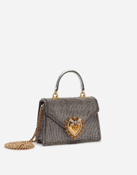 Straight off the catwalk, the Devotion Bag is the new object of desire. Created out of a love for craftsmanship and attention to detail, this bag is embellished with the symbol for love par excellence: the sacred heart. Small Devotion crossbody bag with rhinestone chain: • Mordore nappa leather top handle and detachable chain shoulder strap inspired by high quality jewelery • Front flap with bejeweled branded heart hand-tooled from a metal alloy with pearl inlay • Concealed magnetic fastening and customized heart • Mordore nappa leather interior with flat pocket • Item comes with its own special dust bag and packaging • Measurements: 19 x 13 x 4.5 cm - 7.5 x 5.1 x 1.8 inches • Made in Italy Care And Details External composition: 5% Lambskin 20% Calfskin 41% Polyester 34% Polypropylene Internal composition: 100% Lambskin