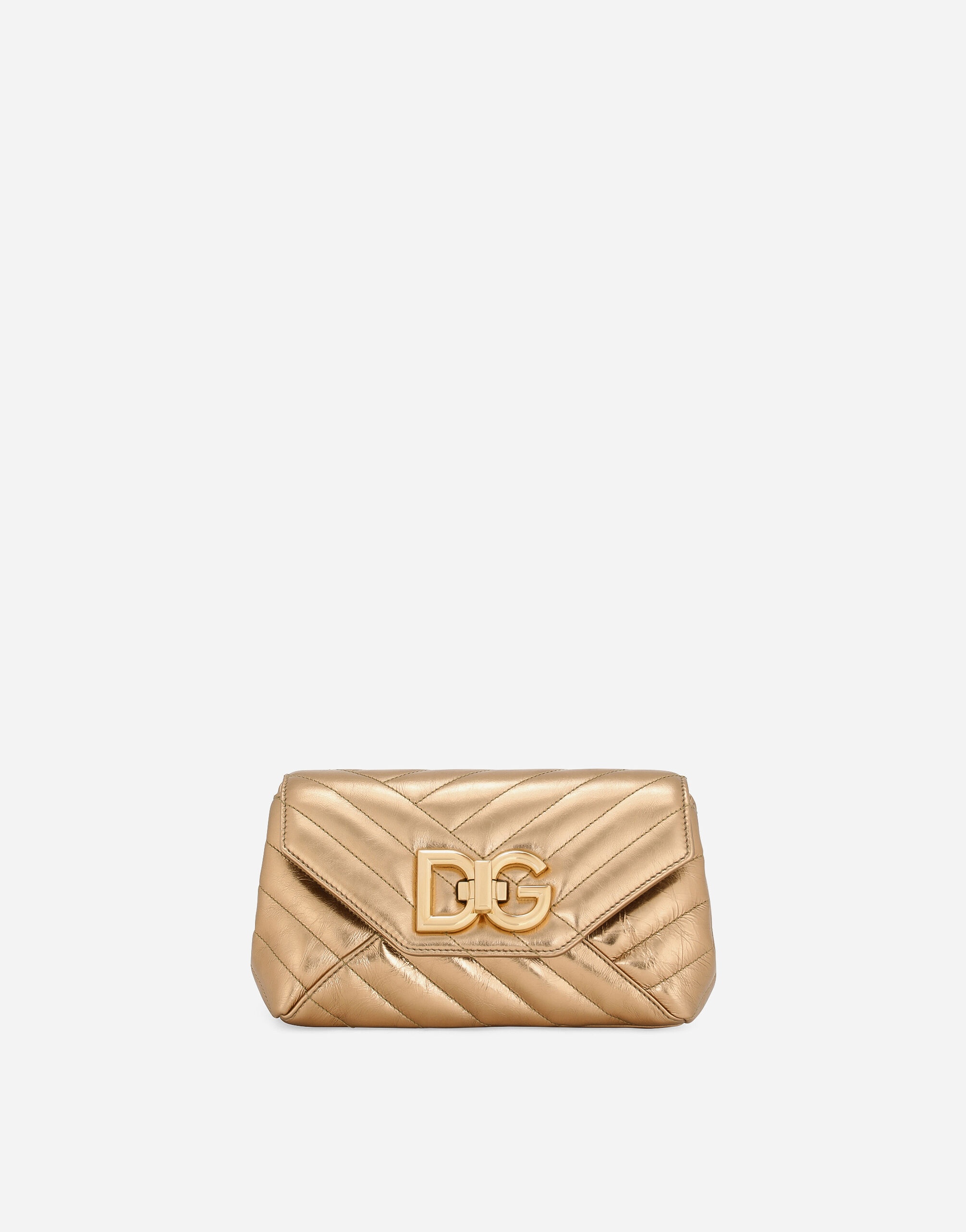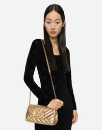 Iconic style is being given some contemporary edge, creating a new vision of the brand’s signature aesthetic. This small Lop bag comes in foiled craquelé calfskin with quilted detailing. Foiled craquelé calfskin Lop crossbody bag: • Gold • Flap fastening with DG logo • Adjustable and detachable crossbody strap • Printed fabric lining featuring a zipped pocket and flat pocket • Item comes with a branded dust bag • Measurements: H13 x W21 x D6 cm • Made in Italy External composition: 100% Calfskin Internal composition: 65% Cotton 30% Calfskin 3% Polyamide 2% Spandex