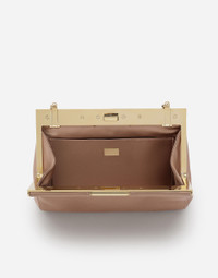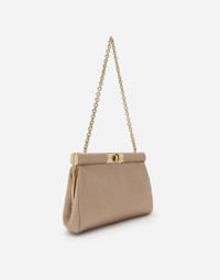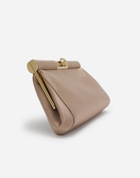 Iconic and timeless, this new Marlene bag comes entirely in satin with a chain strap. Small satin Marlene bag: • Beige • Chain strap • Light gold-plated turn-lock fastening • Satin lining and flat pocket • Item comes with a branded dust bag • Measurements: H11.5 x W19 x D4.5 cm • Made in Italy External composition: 66% Viscose 34% Silk Internal composition: 68% Viscose 32% Silk