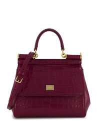 small Sicily 62 tote bag Highlights - Maroon - Calf leather - Embossed crocodile effect - Gold-tone logo plaque - Foldover top with magnetic fastening - Single rolled top handle - Adjustable detachable shoulder strap - Main compartment - Cotton lining - Gold-tone hardware Made in Italy Composition Lining: Cotton 80%, CALFSKIN 20% Outer: CALFSKIN 100% SIZE & FIT Measurement DEPTH 2.36 in(6 cm) HEIGHT 5.51 in(14 cm) WIDTH 8.46 in(21.5 cm)