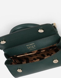 A brand icon, the Sicily bag is coming in a new practical and compact version. Perfect for carrying your essentials with you, it comes in Dauphine calfskin and features the branded plate with two metal plating finishes: • Front flap with hidden magnetic fastening • Branded plate featuring two metal plating finishes • Top handle and adjustable, detachable strap in Dauphine calfskin • Printed fabric lining and flat pocket • Item comes with a branded dust bag • Measurements: 11 x 18 x 6 cm - 4.3 x 7.1 x 2.4 inches • Made in Italy Care And Details External composition: 100% Calfskin Internal composition: 80% Cotton 20% Calfskin