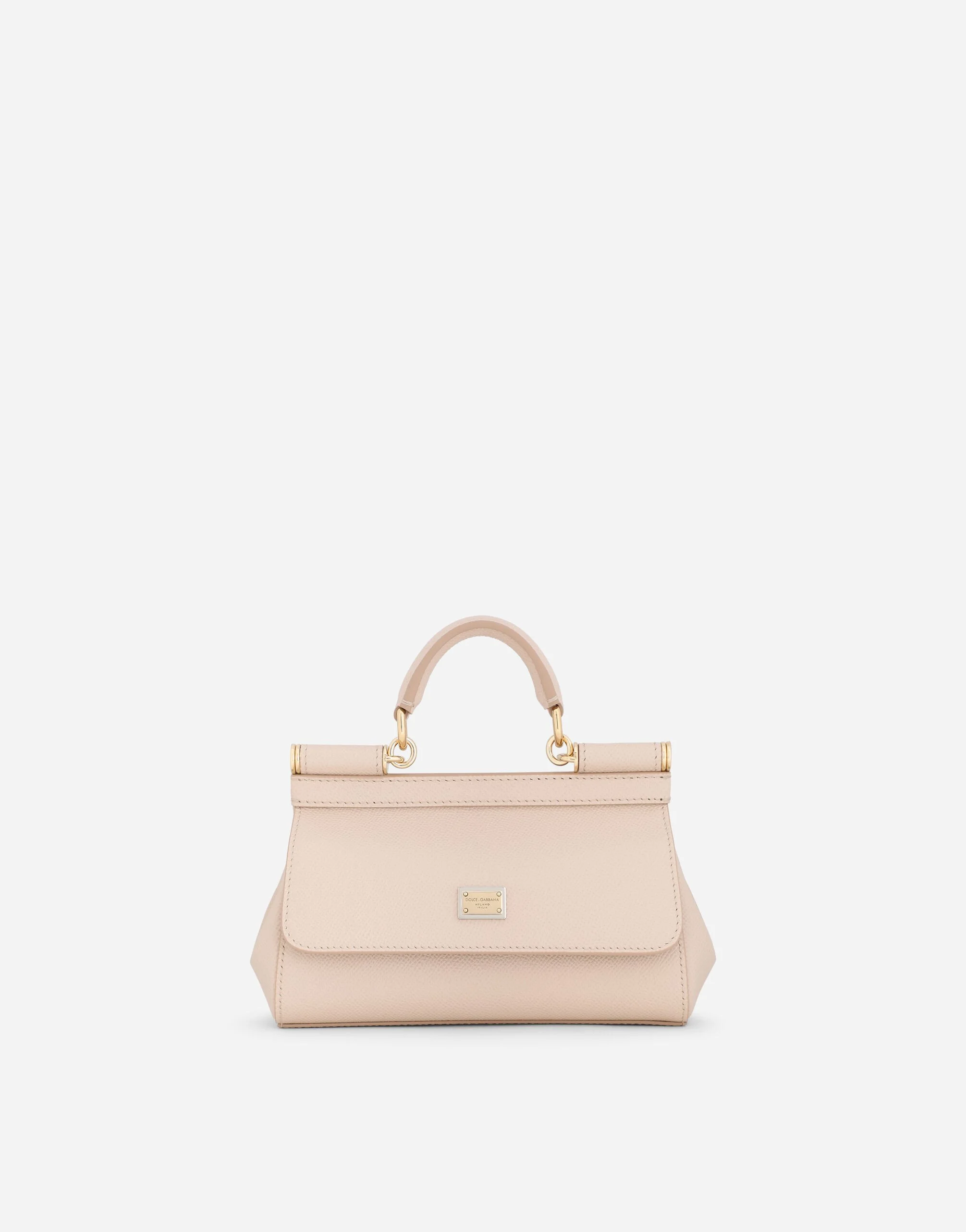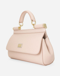 A brand icon, the practical and compact Sicily bag is perfect for carrying your essentials with you. Coming in Dauphine calfskin, it features an adjustable, detachable crossbody strap and is embellished by a logo tag with two metal plating finishes. Small Sicily bag in Dauphine calfskin: • Pink • Front flap with hidden double magnetic fastening • Logo tag featuring two metal plating finishes • Top handle and adjustable, detachable strap in Dauphine calfskin • Printed fabric lining and flat pocket • Item comes with a branded dust bag • Measurements: H13 x W19 x D6 cm • Made in Italy External composition: 100% Calfskin Internal composition: 80% Cotton 20% Calfskin