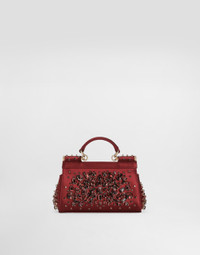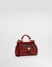A brand icon, this small Sicily bag is perfect for carrying your essentials with you. Made from embroidered satin, it comes with the branded tag that features two metal plating finishes. Small satin Sicily bag with embroidery: • Red • Front flap with button fastening • Branded tag featuring two metal plated finishes • Top handle and adjustable, detachable strap in calfskin • Nappa leather lining and flat pocket • Item comes with a branded dust bag • Measurements: H13 x W19 x D6 cm • Made in Italy External composition: 68% Viscose 32% Silk Internal composition: 58% Viscose 20% Lambskin 22% Silk