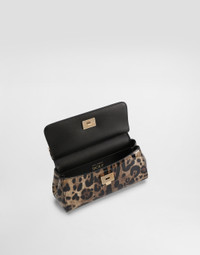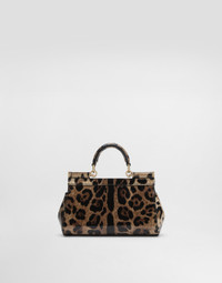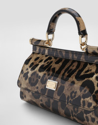 The brand’s origins and invaluable archives have been reworked and reinterpreted to imbue Dolce&Gabbana’s signature style with new life. Small Sicily bag in polished calfskin: • Leopard print • Front flap with hidden double magnetic fastening • Logo tag featuring two metal plating finishes • Top handle and adjustable, detachable strap in leopard-print polished calfskin • Printed fabric lining and flat pocket • Item comes with a branded dust bag • Measurements: H13 x W19 x D6 cm • Made in Italy External composition: 100% Calfskin
