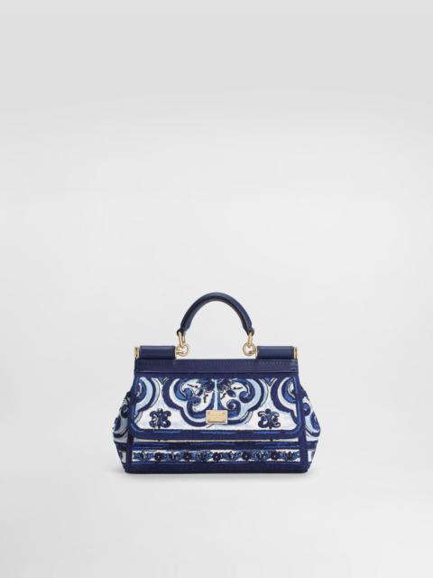 The Sicily small bag is a tribute to the Italian artisan tradition, enriched with Majolica embroidery that enhances its beauty. Perfect for adding a touch of elegance to your look. Small Sicily handbag with Majolica embroidery: • Multi-coloured • Leather handles, removable and adjustable shoulder strap • Tuck-in closure and light gold plated buckle • Bigalvanic plate • Internal customization: stamp with film • Thread embroidery • Interior with flat pocket • Item equipped with a logo bag and pre-assembled box • Measurements: H13 x W19 x D6 cm • Can hold keys, card holder and phone. • Made in Italy External Composition: 80% Cotton, 20% Calfskin