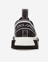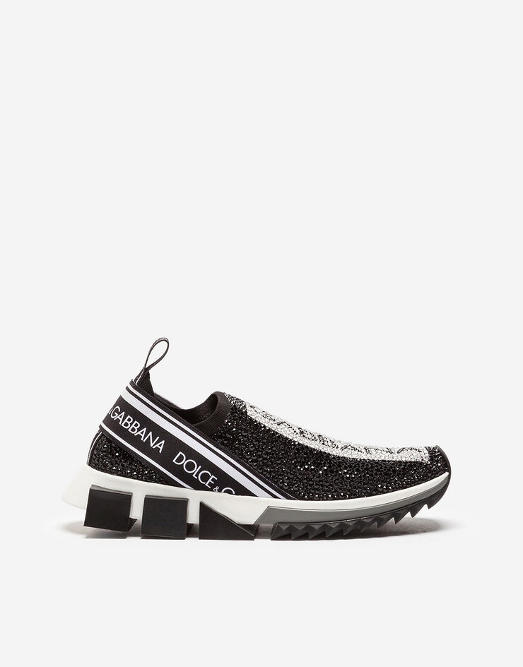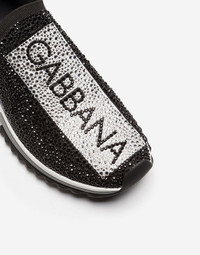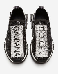 The iconic Sorrento slip-on sneakers in logotape-print stretch mesh with fusible crystals in the shape of a sock and a geometric sole come covered in sparkle in this unique and precious version. Differently sized crystals are applied and recreate the logotape design flawlessly, which is also created with rhinestones: • Printed stretch mesh upper with fusible crystal appliqués • Branded, stretch tape on the back • Leather footbed with branded label • Two-tone micro sole • Extra-light rubber bottom assembly • Item comes with themed packaging • Made in Italy • Small fit: we recommend choosing a larger size. Care And Details External composition: 5% Spandex 70% Polyester 10% Polyurethane 15% Rayon Internal composition: 75% Calfskin 5% Cotton 20% Rayon