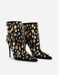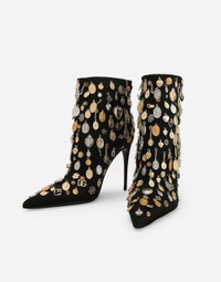 Feminine and elegant, these Lollo ankle boots come in satin and feature embroidered charm embellishment. Satin ankle boots with embroidered charms: • Black • 105-mm heel • Kidskin insole with branded label • Branded leather sole • Item comes with a branded dust bag • Made in Italy External composition: 69% Viscose 31% Silk Internal composition: 90% Lambskin 10% Goatskin
