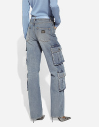 Dolce&Gabbana is conveying a new way of interpreting denim and does so by drawing inspiration from key words such as glamor and signature aesthetic, creating a collection that is perfect for every style and personality, merging femininity, modernity and originality. Vintage-look stonewash cotton denim cargo jeans: • Blue • Regular rise • Multiple pockets • Branded label on the coin pocket • Tobacco brown top-stitching • Branded metal and leather tag on the back pocket • Leg length from waistband: 107 cm • Hem: 23 cm • Zipper and branded metal button fastening • The model is 175 cm tall and wears a size IT 40 • Made in Italy External composition: 100% Cotton