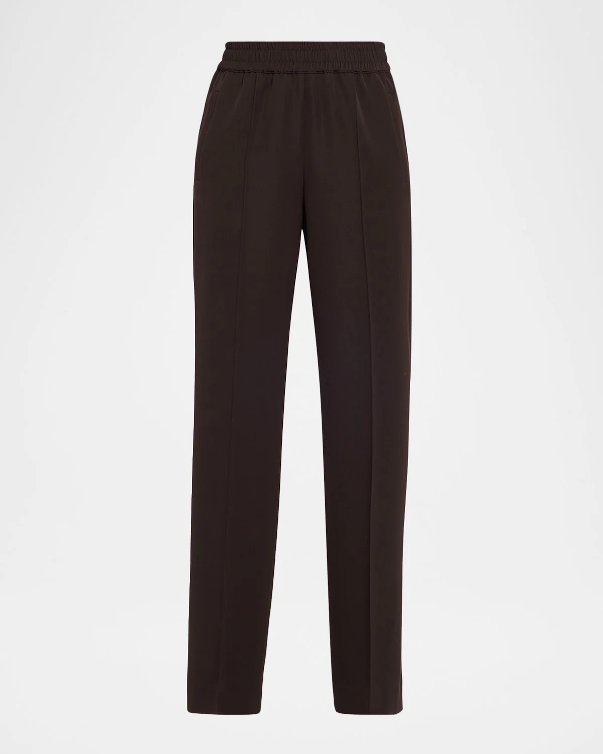 - Dolce&Gabbana gabardine pants featuring a pintuck front and an elasticized waistband - Mid rise sits high on hip - Side slip pockets - Straight legs - Full length - Pull-on style - Virgin wool - Made in Italy