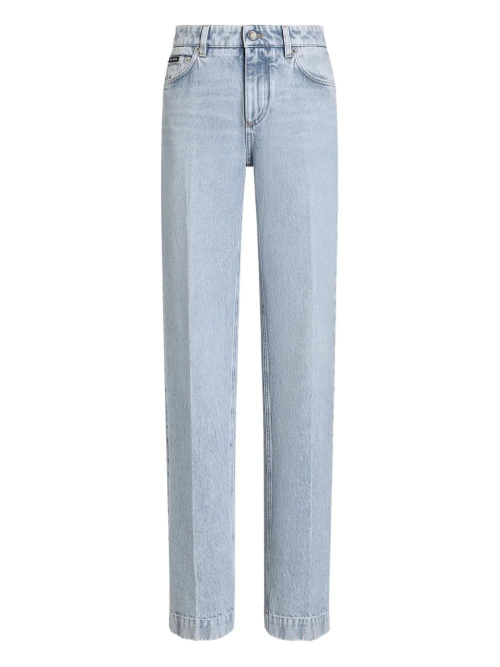 straight-leg jeans Highlights - Light blue - Mid-rise - Five-pocket design - Belt loops - Logo-patch to the rear Made in Italy Composition Cotton 100% Washing instructions Read Manufacturer Guidelines